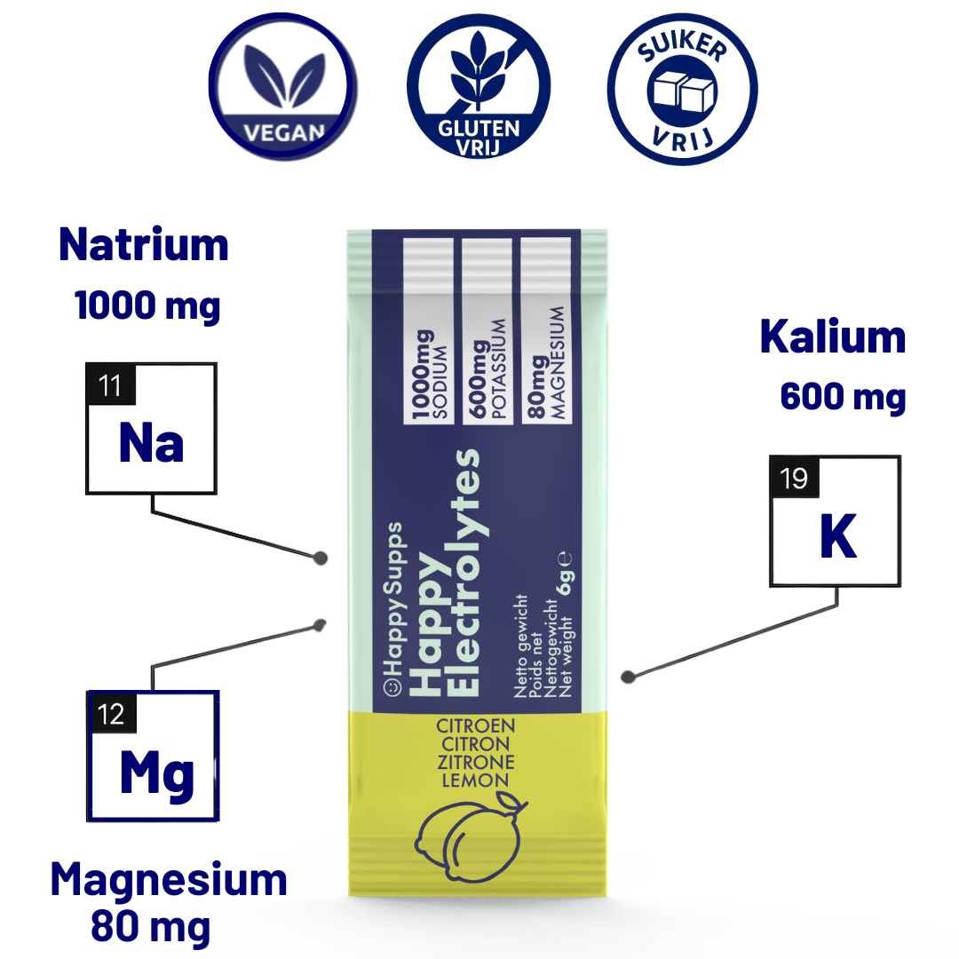 Durch die Zufuhr von Kalium mit Happy Electrolytes tragen Sie dazu bei, dass Ihr Körper im Gleichgewicht bleibt und Ihr Nervensystem optimal funktioniert.