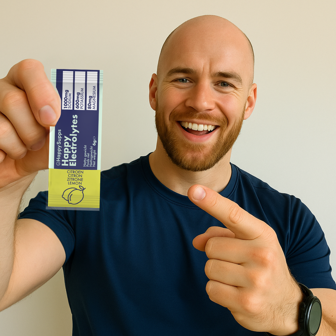 Happy Electrolytes ist kein gewöhnliches Sportgetränk. Wir verwenden ausschließlich reine Zutaten – ohne Zucker, Füllstoffe oder chemische Süßstoffe, die Ihren Magen belasten können. Die Formel enthält ein wissenschaftlich ausgewogenes Verhältnis von Natrium, Kalium und Magnesium und ist mit echtem Bio-Zitronenpulver verfeinert. Leicht für Ihren Körper, kraftvoll für Ihr Nervensystem.